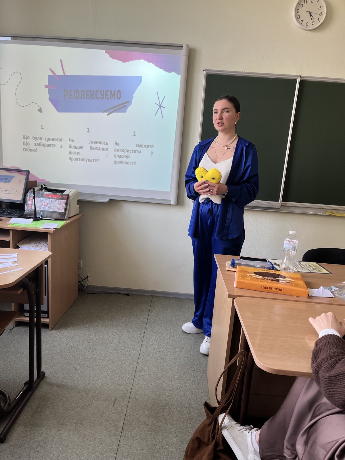 17.04.2025 року в Фаховому коледжі "Універсум" з нагоди Дня коледжу відбулася зустріч студентів 4 курсу спеціальності "Початкова освіта" з випускницею 2019 року - Алексєєвою Анастасією, вчителем ліцею 107 "Введенський" Подільського району міста Києва. Проведений тренінг "Дія - це крок до успіху. Про діяльнісний, практичний підхід", де студенти ознайомилися з діяльнісним підходом, активно працювали над розробкою інноваційних ідей для практичних уроків мовно-літературної освітньої галузі. Теми, які запропонували студенти, відзначалися оригінальністю та спрямованістю на активне залучення учнів до навчального процесу. Крім того, під час тренінгу студенти отримали цінні рекомендації щодо ефективної організації освітнього простору. Отримані знання та натхнення стануть міцним підґрунтям для майбутньої педагогічної діяльності наших студентів, допомагаючи їм впроваджувати дієві методи навчання.