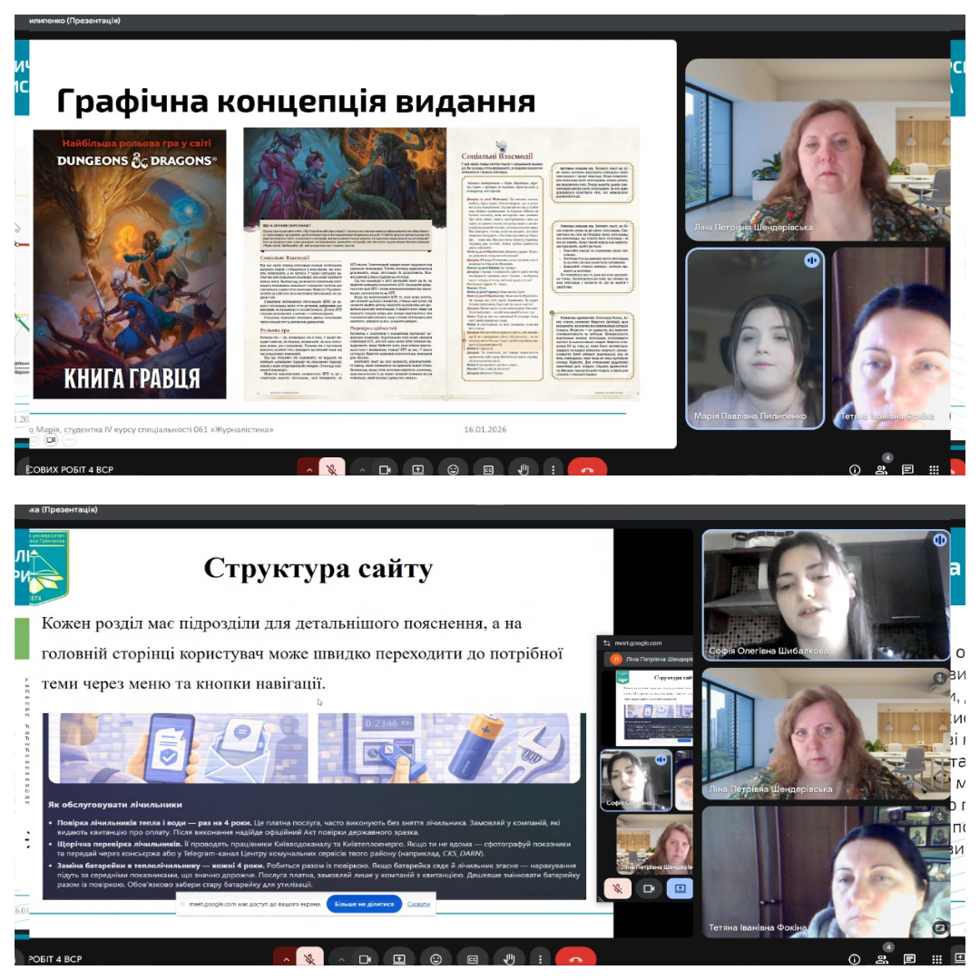 16.01.2026 р. у Фаховому коледжі «Універсум» відбувся захист курсових робіт студентами 4 курсу спеціальності «Журналістика» освітньо-професійної програми «Видавнича справа та редагування».