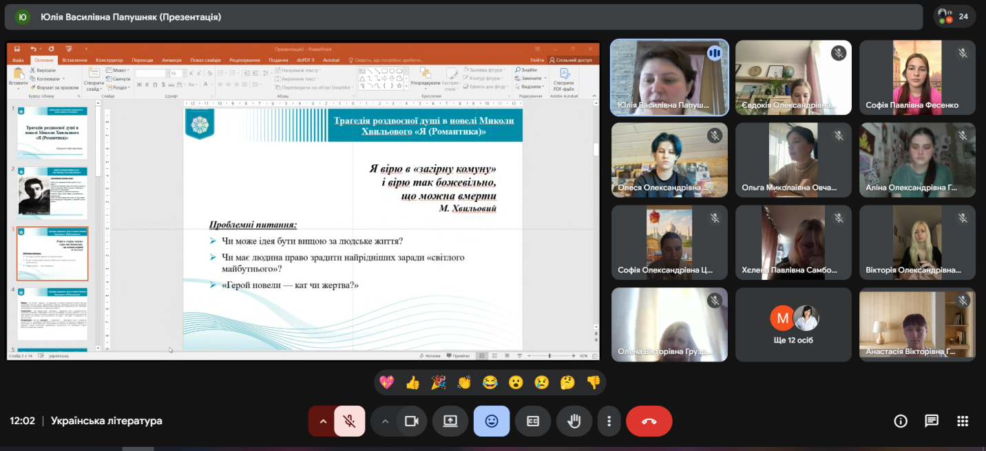 27 лютого 2026 року у Фаховому коледжі «Універсум» для студентів групи ДОфмб-1-25-3.0д та викладачів відбулося відкрите практичне заняття з української літератури на тему: Трагедія роздвоєної душі в новелі Миколи Хвильового «Я (Романтика)».